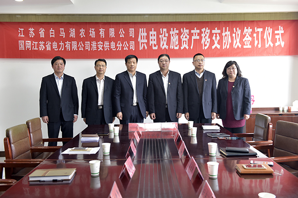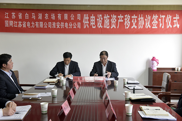 4月16日下午,江蘇省白馬湖農(nóng)場(chǎng)有限公司與國(guó)網(wǎng)江蘇省電力有限公司淮安供電分公司簽訂供電設(shè)施資產(chǎn)移交協(xié)議,開(kāi)啟雙方攜手發(fā)展、合作共贏的新篇章。
