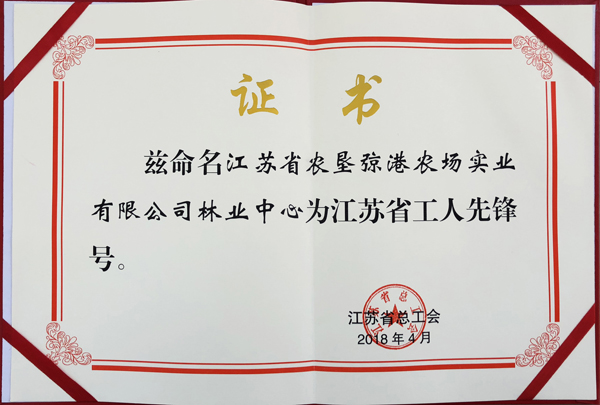 日前,江蘇省總工會授予?港農(nóng)場林業(yè)中心“江蘇省工人先鋒號”榮譽(yù)稱號。