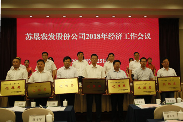 會(huì)議期間,蘇墾農(nóng)發(fā)黃海分公司、蘇墾農(nóng)發(fā)東辛分公司、蘇墾農(nóng)發(fā)臨海分公司與大華種業(yè)集團(tuán)等四家單位作了交流發(fā)言。會(huì)議隆重表彰了一批上半年工作業(yè)績(jī)突出的先進(jìn)集體,授予7家分公司2018年度“三夏”工作優(yōu)勝獎(jiǎng)、6家分公司2018年度拓展基地“三夏”工作優(yōu)勝獎(jiǎng)、3家分公司2018年度小麥高產(chǎn)獎(jiǎng)、10家分公司2018年度夏熟效益獎(jiǎng)、4家分公司2018年度拓展基地夏熟效益獎(jiǎng)。7月24日晚,還專題召開(kāi)蘇墾農(nóng)服工作推進(jìn)會(huì),就下一階段農(nóng)業(yè)社會(huì)化服務(wù)體系建設(shè)工作進(jìn)行了部署要求。