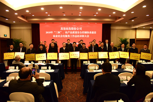 12月19日,蘇墾農發(fā)股份公司在南京隆重召開2018年“三秋”、農產品質量安全控制體系建設、農業(yè)社會化服務工作總結表彰大會。集團公司總經理、蘇墾農發(fā)股份公司董事長胡兆輝主持會議并講話。集團公司黨委委員、蘇墾農發(fā)股份公司總裁蘇志富作報告,并宣讀表彰決定。會議表彰了在2018年“三秋”工作、農產品質量安全控制體系建設及農業(yè)社會化服務工作中表現(xiàn)優(yōu)異、成績突出的先進集體和先進個人。