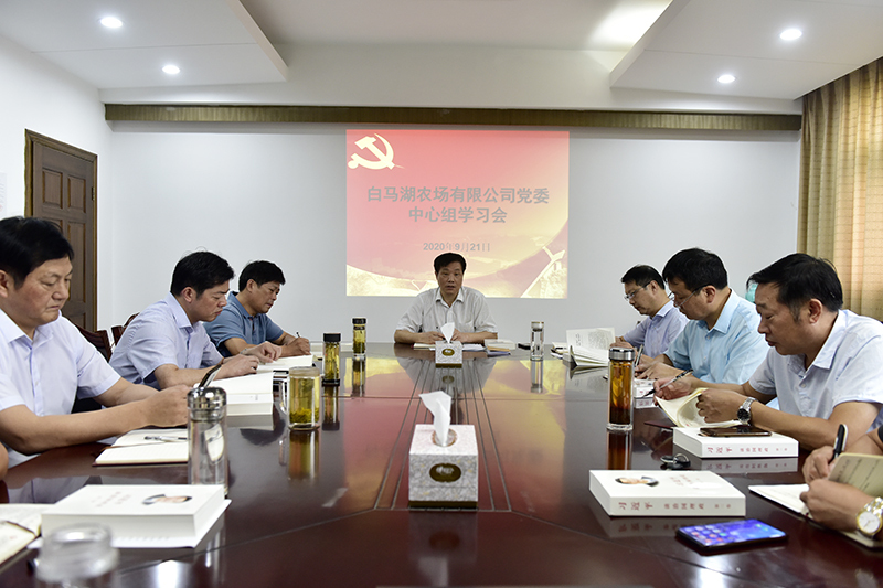 921日上午,白馬湖農場公司黨委中心組舉行第十次集中學習會,認真學習《習近平治國理政》第三卷第一專題、第二專題相關篇章并交流研討心得體會,及時傳達集團公司黨建工作推進會和產業發展推進會精神。黨委書記姚春華主持學習會,中心組全體成員參加學習會。