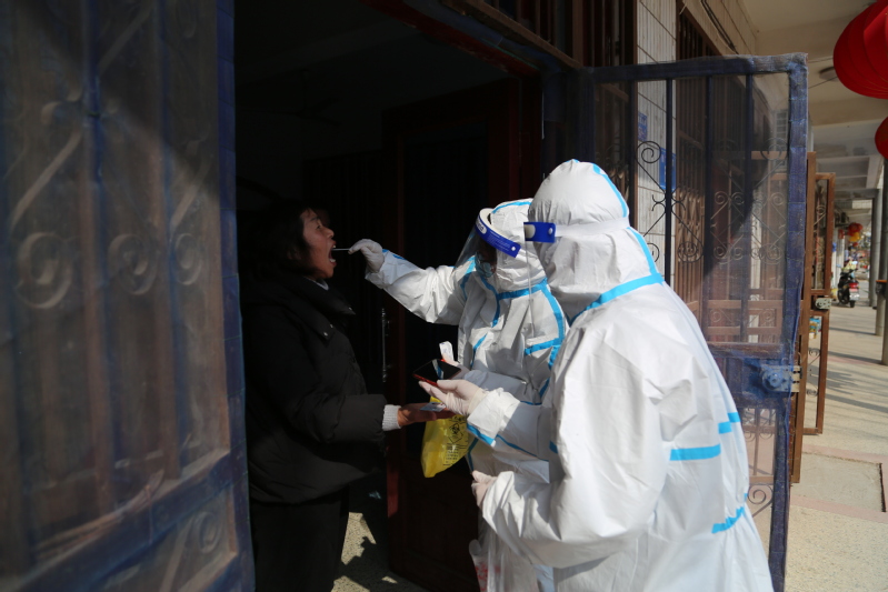 3月5日,連云港市海州區(qū)通報(bào)發(fā)生新冠肺炎疫情,形勢(shì)十分嚴(yán)峻。崗埠上下迅速行動(dòng)起來(lái),按照要求組織開(kāi)展全員核酸檢測(cè)。全員核酸檢測(cè)要求一天內(nèi)對(duì)崗埠所有在家人員進(jìn)行檢測(cè),農(nóng)場(chǎng)四個(gè)點(diǎn)位同時(shí)開(kāi)始,負(fù)責(zé)檢測(cè)的人員特別緊張。馬素蓮得知這一情況,主動(dòng)和相關(guān)人員溝通,暫停了自家門診,帶領(lǐng)醫(yī)生錢冬梅、護(hù)士錢明霞加入了振興廣場(chǎng)籃球場(chǎng)監(jiān)測(cè)點(diǎn)的核酸檢測(cè)人員隊(duì)伍。從3月5日到11日,她們?nèi)艘恢眻?jiān)守在核酸檢測(cè)一線,每天檢測(cè)人員合計(jì)達(dá)到兩三千人。有時(shí)候,她們需要配合網(wǎng)格員深入鎮(zhèn)區(qū)、生產(chǎn)區(qū)各居委會(huì)上門為行動(dòng)不便的人員進(jìn)行采樣,足跡遍布大街小巷,密不透風(fēng)的防護(hù)服常常讓她們滿臉通紅透不過(guò)氣來(lái)。護(hù)士錢明霞告訴筆者,3月11日當(dāng)天,她負(fù)責(zé)部分小區(qū)的核酸采樣工作,光是6樓就爬了6次,腿最后跟灌了鉛一樣,挪不動(dòng)?!坝袝r(shí)候晚上嘴里吃著東西就睡著了?!?/span>