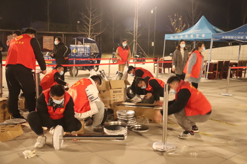 一名黨員就是一面旗幟。黨員志愿者們身穿紅馬甲,忙碌的身影,時時穿梭在機關(guān)門口、立新公園采樣點之間,成為夜空下一抹靚麗的風景線。搬運隔離欄,擺放桌椅,搭起遮陽篷,拉起警戒線,布設(shè)指引標志,劃定一米線,配齊消毒液、醫(yī)療廢物垃圾桶,對現(xiàn)場布置進行查漏補缺,只為居民群眾提供一個安全有序的核酸檢測環(huán)境。