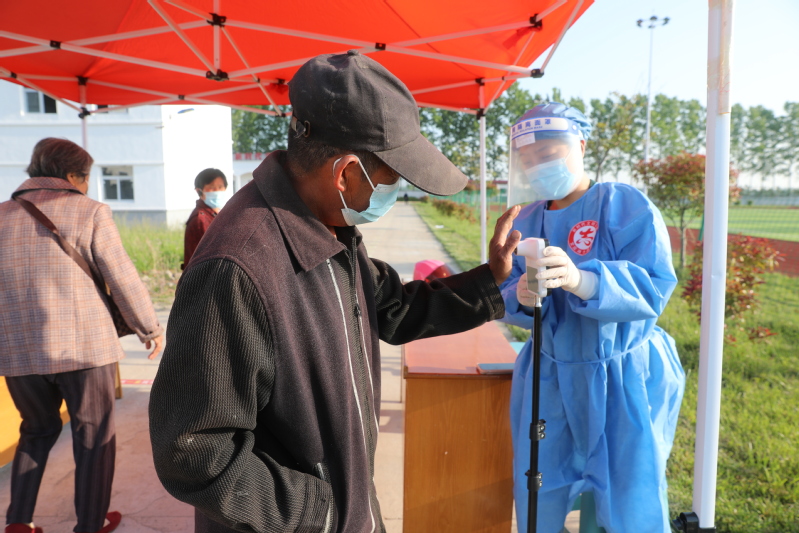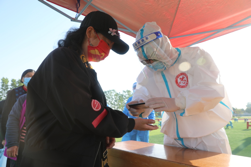 黨有號召,團有行動。一大早,農(nóng)場公司青年黨員、團員來到現(xiàn)場,維持秩序、督促掃碼測溫、認真核對居民身份信息,以實際行動書寫志愿精神,用奮勇爭先詮釋青年力量。