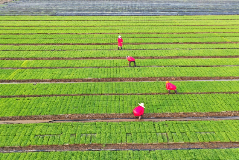 秧好半熟稻,苗好產(chǎn)量高。5月21日,小滿,寶應(yīng)湖農(nóng)場三生產(chǎn)區(qū)職工正在進(jìn)行小秧管理。