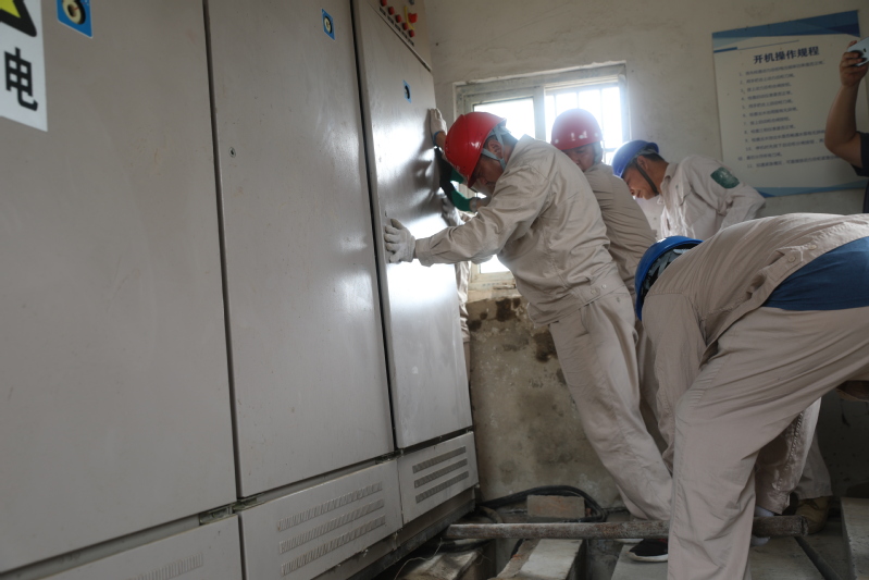 7月5日上午6點(diǎn)10分?!皸铌?duì)啊,8隊(duì)南電站不工作了!”接報(bào)后,凱惠電力寶應(yīng)湖分公司負(fù)責(zé)人楊加春立即組織3名電工趕到現(xiàn)場(chǎng)。經(jīng)排查,是電站開關(guān)柜壞了。落實(shí)開關(guān)柜、組織材料,他們兵分兩路共同推進(jìn)。十余個(gè)電話打過后,趙愛華終于在農(nóng)機(jī)庫找到一臺(tái)型號(hào)匹配的開關(guān)柜。8點(diǎn)趙愛華等將登高工具、絕緣棒、電纜等材料運(yùn)到電站。電工邵榮祥戴上安全帽,用絕緣棒將三相開關(guān)斷開,率先爬上高壓電桿,又和電工趙愛華、劉福相一起將壞電柜上的控制開關(guān)線一一拆除。不足9平方的泵房里,悶熱狹小,壓得人透不氣來,地處田間雜草叢中,蚊蟲直撞人臉,他們?nèi)徊活?,全神投入搶修?/span>不一會(huì)兒就大汗淋漓。拆除后,他們又與8隊(duì)工人一起把新柜抬進(jìn)泵房。200多斤開關(guān)柜死沉死沉,狹小的空間嚴(yán)重限制作業(yè),一不小心趙愛華的手肘撞在了電柜上,一陣鉆心得痛。終于把柜子擺到合適位置,接線、拉電纜,電工們立即展開。11點(diǎn),邵榮祥再次爬上高壓電桿,推上開關(guān),啟動(dòng)控制,電站發(fā)出隆隆的歡唱。此時(shí),溫度計(jì)顯示的室外溫度達(dá)到了43攝氏度,電工們已全身濕透。