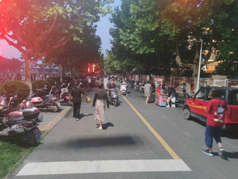 筆者站在廣場(chǎng)的門前看了一會(huì)兒后發(fā)現(xiàn),盡管每天傍晚來(lái)這里健身的人流有上千人,創(chuàng)業(yè)路一旁的電瓶車、摩托車車位也十分緊張,但我注意到,許多駕著小轎車來(lái)的居民,將車停放在寬闊的淮海路一側(cè)的車位上,不盲目駛往創(chuàng)業(yè)路上有限的小車位,而大多數(shù)開著輕便車輛的居民,看到出入口旁兩側(cè)車子較多的情況下,也會(huì)去很遠(yuǎn)的地方停車再跑回來(lái),大家都能做到文明自覺(jué),給他人方便,也是給自己方便。圖為有序停放的車輛。
