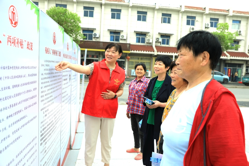 “各位阿姨,今天我們為大家宣傳的是《城鄉居民最低生活保障政策》,包括救助對象、辦理程序……”“劉奶奶您歲數大了,遇到陌生人、陌生電話,一定要提高警惕,遇到高利息、高回報不能相信……”“兒童是祖國的花朵,未來的希望,我們呼吁大家關心幫助困境兒童,農場和金湖縣有困境兒童生活保障、醫療康復救助、福彩圓夢·孤兒助學政策……”活動現場,志愿者們用通俗易懂的語言和圖文并茂的宣傳資料為職工居民宣講展板、宣傳冊內容。