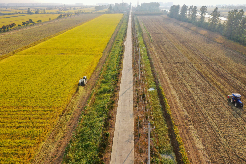 金秋十月,豐收季節(jié)。高空俯瞰寶應(yīng)湖農(nóng)場(chǎng),田間地頭,收割機(jī)來回穿梭,曬糧場(chǎng),稻谷飄香,處處呈現(xiàn)如畫般的豐收美景。水稻收割完之后,旋耕機(jī)、播種機(jī)隨即“登場(chǎng)”,將一粒粒麥種播撒進(jìn)田間,為來年豐收打下基礎(chǔ)。