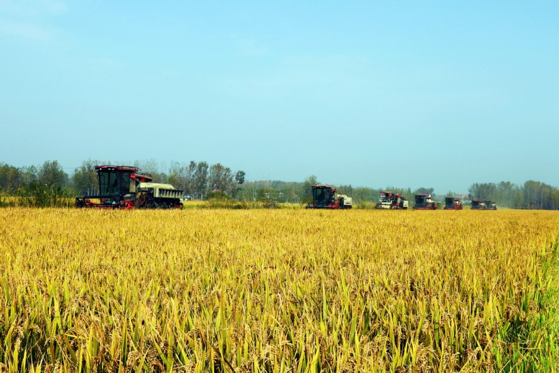眼下,崗埠水稻收割進(jìn)入尾聲,伴隨著機(jī)械的轟鳴聲,一臺(tái)臺(tái)水稻收割機(jī)在稻田間來(lái)回穿梭作業(yè),職工們搶抓農(nóng)時(shí),搶收勞動(dòng)成果,確保顆粒歸倉(cāng)。圖為2023年10月30日,農(nóng)發(fā)崗埠分公司積極組織收割機(jī)械、運(yùn)糧機(jī)械200多臺(tái)搶收水稻,確保5萬(wàn)畝水稻顆粒歸倉(cāng)。