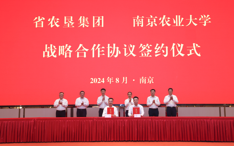 8月9日下午,省農(nóng)墾集團(tuán)與南京農(nóng)業(yè)大學(xué)戰(zhàn)略合作協(xié)議簽約儀式在南京舉行。集團(tuán)公司黨委書記、董事長吳本輝致辭,南京農(nóng)業(yè)大學(xué)黨委書記王春春出席并講話。集團(tuán)公司黨委副書記、總經(jīng)理姜建友、副書記朱浩出席簽約儀式,黨委委員、副總經(jīng)理王立新主持簽約儀式,南京農(nóng)業(yè)大學(xué)校長陳發(fā)棣、黨委副書記吳榮順、黨委常委、副校長單正豐出席簽約儀式。