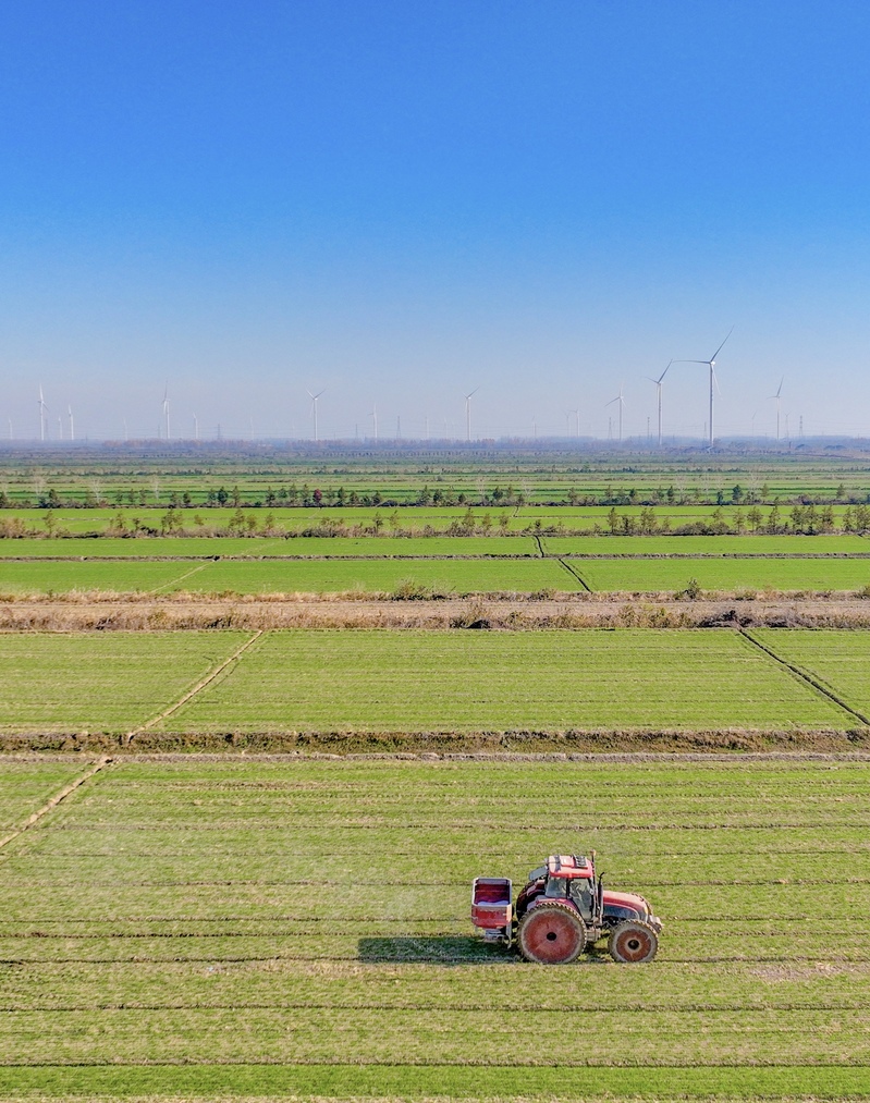 12月9日,江蘇省鹽城市射陽縣的一座農(nóng)場內(nèi),農(nóng)機(jī)正在進(jìn)行田間管理作業(yè)。入冬以來,農(nóng)場搶抓晴好天氣,實施綜合田管,為夏糧增產(chǎn)豐收打好基礎(chǔ)。張偉生攝(中經(jīng)視覺)