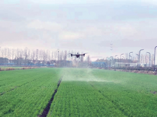 江蘇農(nóng)墾淮海農(nóng)場使用植保無人機對大小麥田莖葉處理化除,防除田間雜草。