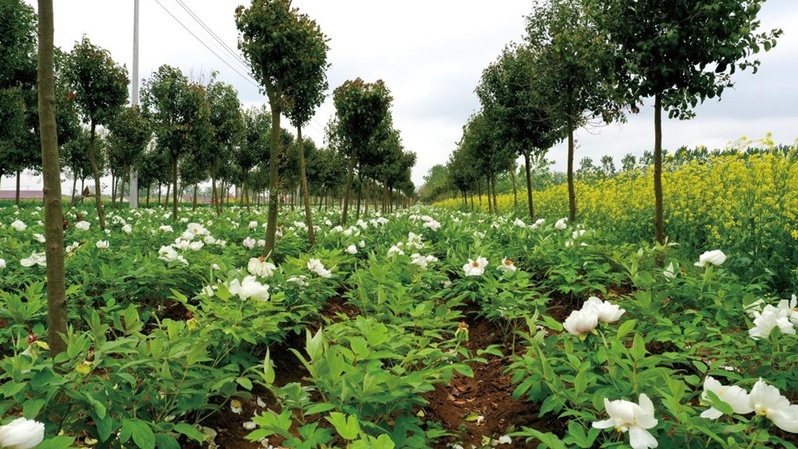 為了讓“綠葉子”變成“金票子”,黃海農(nóng)場科學(xué)利用林間隙地,大力發(fā)展林下經(jīng)濟(jì),在一排排女貞樹下,油用牡丹茁壯成長?!安捎门懞陀陀媚档ち珠g套種模式,能相互取長補短,實現(xiàn)提產(chǎn)量、增效益、保生態(tài)等多贏目標(biāo)?!鞭r(nóng)場林業(yè)中心主任王虎義說。