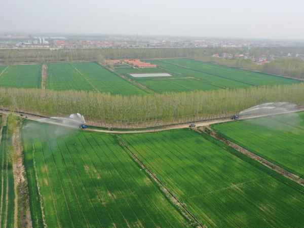 相較傳統(tǒng)漫灌,新技術(shù)每畝可節(jié)省水資源60%以上,灌溉時間、成本顯著下降;因水肥同步利用率提升,小麥有效分蘗數(shù)增加,預(yù)計每畝可增產(chǎn)糧食100斤,實現(xiàn)抗旱、節(jié)水、增產(chǎn)的效果。