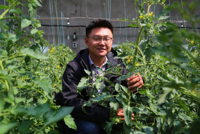 王斯達,1995年出生,是崗埠農場高效農業示范園的工作人員,土生土長的農場人。研究生畢業后,他應聘回到家鄉,投身高效設施農業發展中來。在園區,他積極認真工作,邊學邊干,很快掌握百合花、菊花等種植技術和西紅柿、水果黃瓜的管理方式。他每天穿梭在農場的溫室大棚里,參與西紅柿品種篩選、種植工作,每天趴在大棚里記錄西紅柿生長情況,觀察長勢、土壤水分、pH值等,給各類作物拍攝視頻照片并記錄在農場的美好生活。