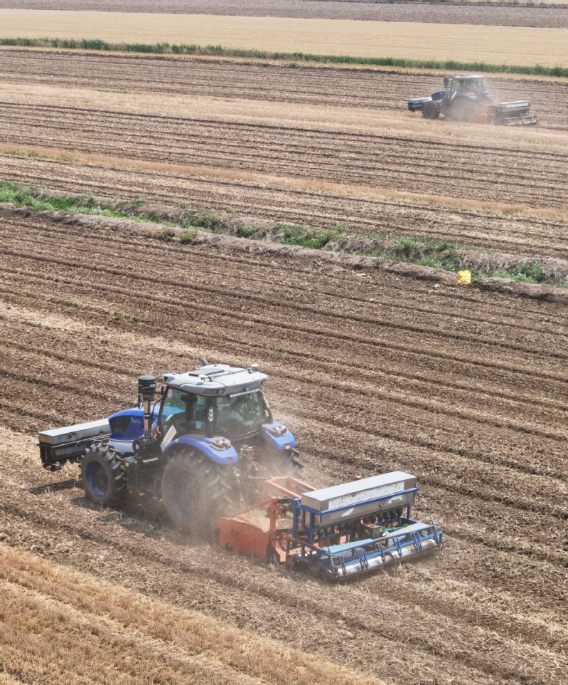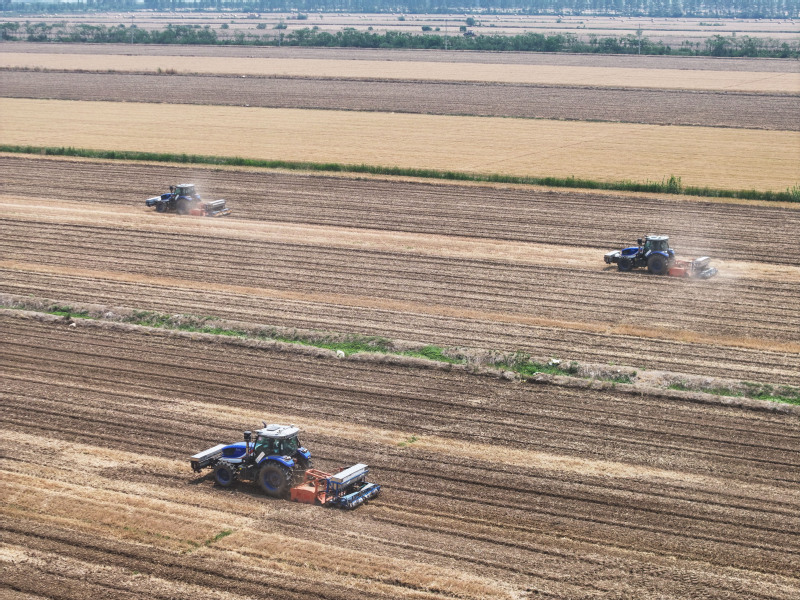 【新華社淮安6月4日】中國江蘇省淮安(わいあん)市盱眙(くい)県にある三河農場でこのほど、9機能一體型の稲?麥用耕運播種機を使ったもみまきが行われた。