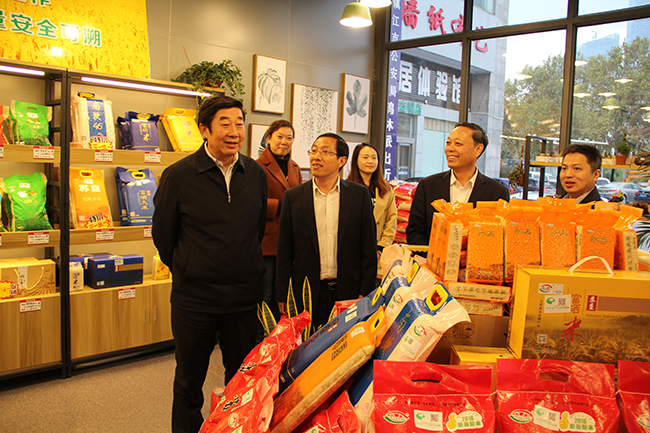 11月8日,集團(tuán)公司總經(jīng)理胡兆輝到蘇墾金橋公司調(diào)研指導(dǎo)工作。副總經(jīng)理仲小兵、蘇墾農(nóng)發(fā)總裁蘇志富以及集團(tuán)公司資產(chǎn)經(jīng)營(yíng)部、蘇墾米業(yè)、蘇墾園藝負(fù)責(zé)人陪同調(diào)研?! 『纵x一行先后考察了蘇墾生態(tài)農(nóng)產(chǎn)品直銷(xiāo)中