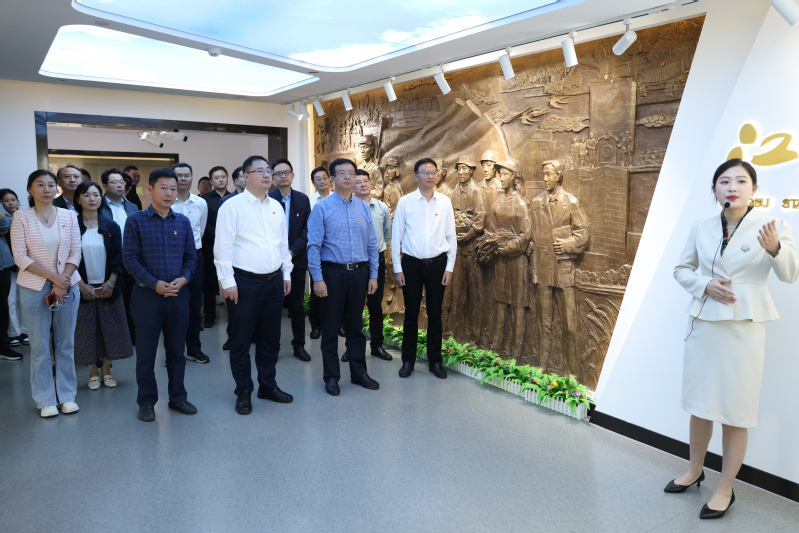 10月9日下午,鹽城市委書記周斌一行到集團(tuán)公司調(diào)研,集團(tuán)公司黨委書記、董事長吳本輝接待并匯報(bào)交流相關(guān)工作。集團(tuán)公司黨委副書記朱浩,副總經(jīng)理、黨委委員王立新、劉衛(wèi)華、鄧國新,總經(jīng)理助理錢伯彬、總經(jīng)濟(jì)師朱亞東,鹽城市副市長、鹽都區(qū)委書記王娟、東臺(tái)市委書記商建明、濱??h委書記、縣長吳啟標(biāo)、響水縣委書記郭超參加會(huì)見。周斌一行首先參觀了江蘇農(nóng)墾展示廳,全方位了解建墾光榮歷史和改革發(fā)展歷程。在隨后的座談會(huì)上,雙方就推動(dòng)農(nóng)業(yè)現(xiàn)代化、墾地融合發(fā)展、農(nóng)場辦社會(huì)職能等進(jìn)行了深入交流。周斌在講話中指出,軍墾文化、紅色國企、農(nóng)為根本是江蘇農(nóng)墾的鮮明特征,省農(nóng)墾集團(tuán)和鹽城市歷史淵源深厚、產(chǎn)業(yè)高度契合、資源優(yōu)勢互補(bǔ),雙方有著良好的合作基礎(chǔ)。期待雙方在農(nóng)業(yè)全產(chǎn)業(yè)鏈發(fā)展、農(nóng)業(yè)科技創(chuàng)新示范、綠色低碳發(fā)展、農(nóng)場面貌提升改善等領(lǐng)域加強(qiáng)合作,共同擦亮農(nóng)業(yè)名片,為完成省委省政府賦予的高質(zhì)量發(fā)展任務(wù)和推動(dòng)農(nóng)業(yè)現(xiàn)代化走在前列的使命作出新的貢獻(xiàn)。吳本輝對周斌一行的到來表示歡迎,對鹽城市委市政府長期以來關(guān)心支持農(nóng)墾事業(yè)發(fā)展表示感謝。他說,鹽城是江蘇農(nóng)墾的搖籃和發(fā)源地,也是墾地融合發(fā)展的高地和先行區(qū)。希望雙方在產(chǎn)業(yè)鏈強(qiáng)鏈補(bǔ)鏈、規(guī)模化土地