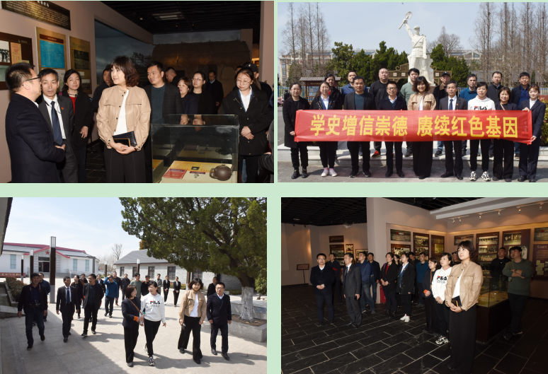 為慶祝中國共產黨成立100周年,重溫黨的歷史,表彰先進,學習先進的熱潮,3月26日中午,南京中山大廈有限公司一行在中山大廈總經理助理、建鄴分公司黨支部書記、副總經理許微的帶領下,組織公司2020年度16名先進個人赴農建四師陳列館開展紅色實境教育活動?;春^r場有限公司黨委書記單祥忠及辦公室等人員陪同。