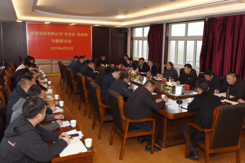 4月22日下午,淮海農(nóng)場有限公司黨委舉行“學(xué)黨史悟思想”專題研討會,農(nóng)場公司黨委書記單祥忠主持會議并講話,淮海領(lǐng)導(dǎo)班子成員、財務(wù)總監(jiān),各黨總支、直屬支部書記,農(nóng)場機關(guān)、二三產(chǎn)單位和駐場單位負責(zé)人參加會議。