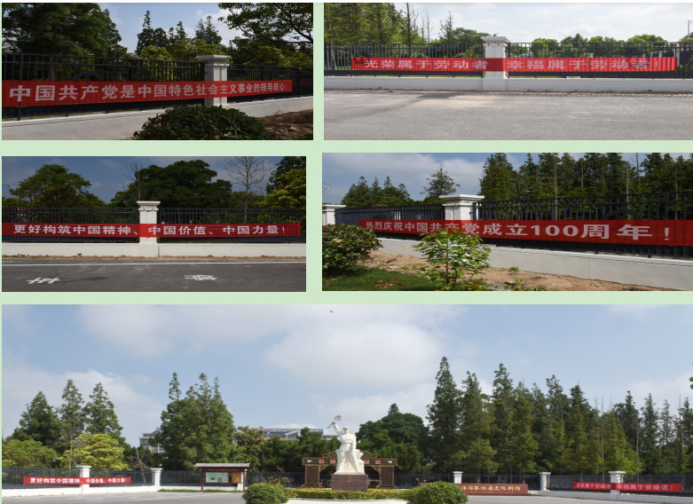 為進(jìn)一步弘揚(yáng)紅色文化,慶祝中國(guó)共產(chǎn)黨成立100周年,淮海農(nóng)場(chǎng)公司除運(yùn)用多載體宣傳黨史學(xué)習(xí)教育,不斷壯大黨史學(xué)習(xí)教育宣傳陣地外,還通過(guò)制作一幅幅醒目的橫幅標(biāo)語(yǔ),讓農(nóng)場(chǎng)社區(qū)的每個(gè)人和來(lái)到陳列館進(jìn)行革命傳統(tǒng)教育的人,隨時(shí)隨地接受黨史學(xué)習(xí)教育的洗禮和熏陶。