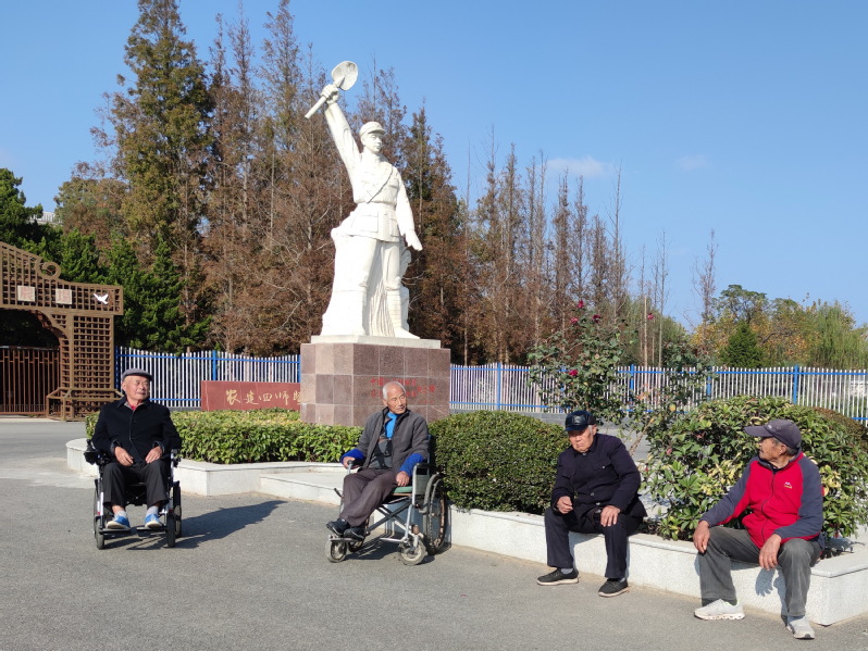 不斷前行的淮海人,扎實開展黨史學(xué)習(xí)教育,大力弘揚軍墾精神,積極宣傳農(nóng)建四師先進模范,用榜樣的力量感召人、鼓舞人、塑造人。農(nóng)場黨委開展“一個黨員就是一面旗幟”“黨員與職工結(jié)對”“黨員責(zé)任區(qū)”活動,并結(jié)合黨務(wù)公開試點工作和創(chuàng)先爭優(yōu),創(chuàng)建學(xué)習(xí)型、服務(wù)型、創(chuàng)新型黨組織等活動,加強農(nóng)場黨建工作。黨史學(xué)習(xí)教育開展以來,淮海農(nóng)場充分利用農(nóng)建四師陳列館這一紅色實境教育基地和健在老軍墾“活化石”的功能,讓軍墾傳統(tǒng)不斷發(fā)揚光大。長長的黨史學(xué)習(xí)教育清單中,農(nóng)場黨委除常規(guī)固定動作外,還在黨員干部和青年員工中采取征集黨史知識試題,開展黨史知識競賽、征文等形式,將系列活動與黨史學(xué)習(xí)教育深度融合,并切實解決職工居民的所需、所急、所難,以更好地把廣大職工居民緊密團結(jié)在黨的周圍,為企業(yè)改革發(fā)展貢獻力量。圖為農(nóng)場老軍工在為學(xué)生說傳統(tǒng)和健在的老軍墾坐在雕像前回憶曾經(jīng)的風(fēng)花雪月。