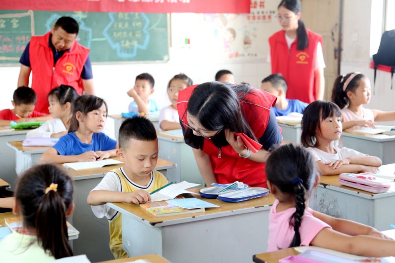 小課堂上,氣氛火熱。志愿者們分工合作,積極與孩子們進(jìn)行互動(dòng)交流,帶領(lǐng)他們開展各種活動(dòng),大家都沉寂在歡聲笑語中。孩子們都十分喜歡志愿者們,他們說:“這些大哥哥和大姐姐都很棒,給我們講解不會(huì)的題,讓我們有了更深的認(rèn)識(shí)和理解?!敝驹刚邆円苍谥驹阜?wù)過程中感受到了快樂和滿足。