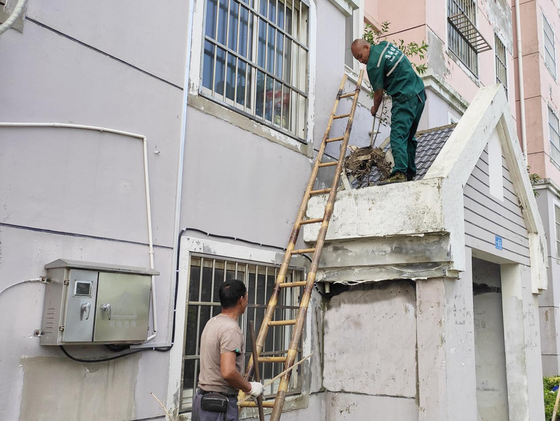 在黨史學(xué)習(xí)教育過程中,農(nóng)場社區(qū)城南居委會的黨員干部和網(wǎng)格員在走訪調(diào)研過程中,發(fā)現(xiàn)沿路的一些樓房單元門頂棚上積攢了許多垃圾,單純從地面上看,有的看不到,但也有的看到長出的一些雜草或小樹簇立在那兒;而如果從居家的窗口特意望去,就可看到垃圾存在,而且十分不雅觀。為進(jìn)一步營造凈化、美化的轄區(qū)環(huán)境,近日,淮海社區(qū)城南居委會聯(lián)合環(huán)衛(wèi)所相關(guān)人員一起,針對淮海路沿線樓房的單元門頂棚存在的垃圾、雜物現(xiàn)象開展了專項清理整治行動。