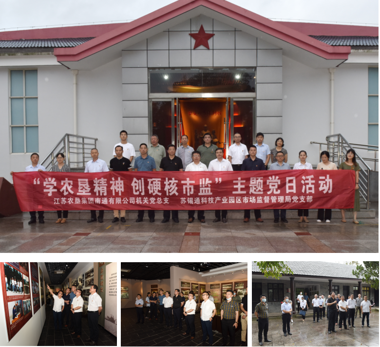 10月8日下午,南通公司機關黨總支與蘇錫通科技產業(yè)園區(qū)市場監(jiān)督管理局黨支部等一行近30人赴農建四師暨淮海農場歷史陳列館,開展“學農墾精神 創(chuàng)硬核市監(jiān)”黨建共建實境教育活動,南通公司黨委書記、董事長嚴忠和蘇錫通園區(qū)黨工委副書記、管委會副主任徐金龍分別帶隊參加了當天的主題黨日活動?;春^r場公司黨委書記、董事長、總經理單祥忠及相關部門人員陪同。