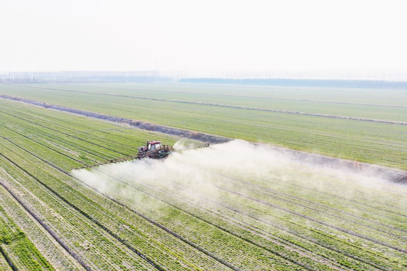 春季是雜草生長(zhǎng)的高峰期,同時(shí)也是小麥?zhǔn)┓实年P(guān)鍵節(jié)點(diǎn)。及時(shí)開(kāi)展化學(xué)除草并合理施肥,能夠有效抑制雜草危害,為小麥生長(zhǎng)補(bǔ)充所需養(yǎng)分,促使麥苗茁壯成長(zhǎng)。連日來(lái),在三河的 4.2 萬(wàn)畝麥田里,無(wú)人機(jī)、植保機(jī)在田間往來(lái)穿梭,開(kāi)展化除作業(yè)。各生產(chǎn)區(qū)依據(jù)前期對(duì)草情苗情的普查結(jié)果,科學(xué)挑選除草劑,并嚴(yán)格按照配比和操作規(guī)程進(jìn)行噴施,在確保除草效果的同時(shí),防止對(duì)小麥造成藥害。與此同時(shí),針對(duì)不同地塊的肥力狀況以及小麥生長(zhǎng)態(tài)勢(shì),制定了精準(zhǔn)的施肥方案,以提升肥料利用率。2月27日上午,在潘莊生產(chǎn)區(qū)王佳鈺規(guī)模體田間,生產(chǎn)區(qū)副主任朱廣耀、農(nóng)業(yè)技術(shù)員孫文崢一邊在田間查看雜草發(fā)生情況,一邊根據(jù)苗情苗勢(shì)制定化除和施肥方案。田的另一側(cè),無(wú)人機(jī)空中作業(yè)與地面植保機(jī)作業(yè)的轟鳴聲交織在一起,一幅春管生產(chǎn)繁忙的畫(huà)卷呈現(xiàn)在眼前?!坝捎谇岸螘r(shí)間長(zhǎng)時(shí)間干旱無(wú)雨,給在田小麥管理帶來(lái)了一定影響,這次降雨對(duì)小麥生產(chǎn)極為關(guān)鍵,我們務(wù)必抓住這次降雨的有利時(shí)機(jī),完成麥田春季化除和肥料撒施工作,化除工作今天基本結(jié)束,就等著下雨撒肥了?!?潘莊生產(chǎn)區(qū)副主任朱廣耀說(shuō)道。為切實(shí)做好春季麥田化除和施肥工作,該場(chǎng)農(nóng)業(yè)中心還組織了農(nóng)業(yè)技術(shù)服務(wù)隊(duì)伍,深入田間地頭進(jìn)行