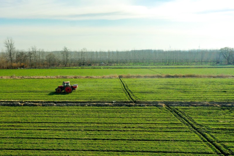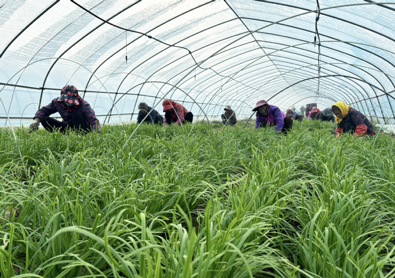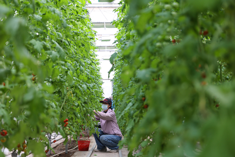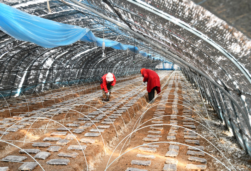 隨著氣溫逐漸升高,為保障羊肚菌正常生長發(fā)育,2月10日上午,淮海產(chǎn)業(yè)發(fā)展中心大棚基地工作人員,積極抓住羊肚菌原基萌發(fā)這一關(guān)鍵節(jié)點,有條不紊地進行揭膜、搭小棚等催菇前的準備工作?!敖裉焓俏覀兊谝慌蚨蔷シN后的第73天,目前有11個種植大棚內(nèi)的羊肚菌菌霜已經(jīng)完全消退,且出現(xiàn)了大量的原基,說明這批羊肚菌的菌絲已經(jīng)達到成熟,進入下一個發(fā)育階段?!毖蚨蔷N植技術(shù)員袁亞洲介紹說,“羊肚菌原基的形成是羊肚菌生長過程中的一個重要環(huán)節(jié),因此我們要及時揭開覆蓋在畦面上的地膜,保證原基獲取適宜的生長環(huán)境,確保原基能夠茁壯生長。?”羊肚菌大棚內(nèi),90多米長的畦面上,斷斷續(xù)續(xù)鋪滿了米粒大小的白色菌菇。技術(shù)員李博正拿著手機,在揭開地膜后的大棚內(nèi)來回穿梭,不時蹲下身子仔細查看羊肚菌原基的長勢,以及對營養(yǎng)袋中營養(yǎng)物質(zhì)的吸收情況?!把蚨蔷z扭結(jié)成球,形成晶瑩透明的米粒狀結(jié)構(gòu),就是羊肚菌的原基。因為十分微小,所以我都拿手機相機放大來看。”李博介紹說,“我們有好幾個種植大棚都出現(xiàn)了一兩個羊肚菌幼菇,也就是所謂的‘信號菇’,說明羊肚菌發(fā)育狀況良好,看來今年我們羊肚菌的產(chǎn)量前景不錯哩。?”為了達到增溫保濕的效果,基地的工作
