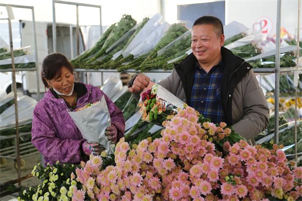 走進(jìn)富民農(nóng)業(yè)科技園14號(hào)大棚,雛菊鮮切花成熟上市,工人們正在溫室大棚里挑選裁切雛菊花。在包裝車(chē)間內(nèi),工人們正在整理數(shù)以萬(wàn)計(jì)的雛菊,去掉多余枝葉,整理包裝成一束束精美的花束,不遠(yuǎn)處的三大排貨架上,全部都是五顏六色的雛菊。“我們園區(qū)種植了5個(gè)大棚的雛菊,約二三十個(gè)品種共15萬(wàn)枝,現(xiàn)在相繼進(jìn)入采摘期?,F(xiàn)在園區(qū)一邊采摘雛菊,一邊忙著整理包裝,準(zhǔn)備供應(yīng)山東客商?!眻@區(qū)副主任魏建東介紹說(shuō),剛上市的雛菊每天采摘量在2000枝以上,往后會(huì)越來(lái)越多,不斷滿足市場(chǎng)需求。隨著社會(huì)經(jīng)濟(jì)的發(fā)展和人們生活水平的提高,鮮花逐漸成為更多人裝扮生活的必需品,消費(fèi)理念的改善促使鮮切花品種結(jié)構(gòu)日趨豐富。其中,雛菊以其色彩繁多、花型多樣、瓶插期長(zhǎng)、耐運(yùn)輸、清新動(dòng)人的花姿,受到廣大消費(fèi)者喜愛(ài)追捧。崗埠農(nóng)場(chǎng)公司緊盯市場(chǎng)需求,大力發(fā)展多元鮮切花種植,引進(jìn)新品種、新技術(shù),積極探索發(fā)展新路徑新模式,走特色鮮花發(fā)展之路?!爱?dāng)前,我們園區(qū)大力發(fā)展鮮切花產(chǎn)業(yè),從種植、包裝、銷(xiāo)售逐步升級(jí),進(jìn)一步轉(zhuǎn)變經(jīng)營(yíng)模式,提高產(chǎn)業(yè)效能。在提高集體經(jīng)濟(jì)效益的同時(shí),發(fā)揮示范帶頭作用,為花農(nóng)的種植經(jīng)營(yíng)創(chuàng)造更有利條件,在增加場(chǎng)域就業(yè)上做文章,爭(zhēng)取實(shí)現(xiàn)社會(huì)效益的最大