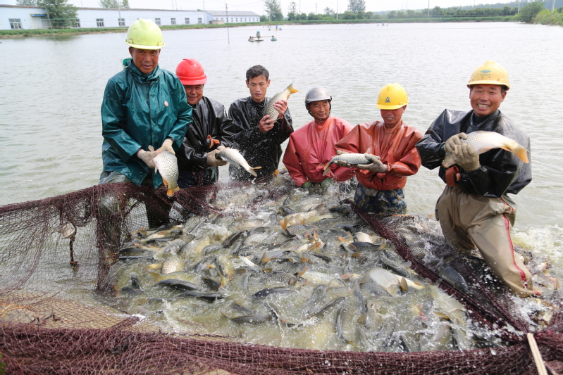 春放秋捕,共話豐收。走進崗埠農場公司南漁場的鯉魚養殖基地,一條條肥美的鯉魚不斷躍出水面,引起水花四濺。8月29日,崗埠農場公司水產養殖中心迎來鯉魚“大豐收”,養殖基地內熱鬧開捕秋天第一網鯉魚。初秋的早晨已然涼意十足,早上不到6點,天剛蒙蒙亮,捕撈人員就來到魚塘開網起魚。在水產公司工作人員的指揮下,一張巨大的漁網隨著捕魚工人的移動緩緩張開,大家不顧冰冷的水下溫度,緊張忙碌了起來。經過鋪底、收網、聚攏等環節的共同協作,漁網被慢慢升起……整個現場一片繁忙熱鬧景象。經過近三個小時的忙碌,在大家的精心分揀下,裝滿魚的筐子被吊車有序吊起,稱重、記錄、放魚一氣呵成?!斑@個吊車頂部的黃色圓塊就是電子秤,吊起魚的同時,秤上的信號就發到這個無線接收裝置上來,秤重既方便又精準?!爆F場記賬的方正解釋說?!翱催@些魚,品相好、質量高,抓都抓不住,活蹦亂跳的,真是大豐收啊!”起魚的工人們雖然全身都已濕透,但是看著手里的大魚,臉上洋溢著收獲的笑容。據悉,本次捕撈的鯉魚名叫“福安鯉”,在春季投放,采取訂單式捕撈銷售。當天,2.2萬斤“淮河牌”福安鯉被送上等候已久的運輸車,銷往本省徐州市及河南省等地。“養殖中心依托豐富水